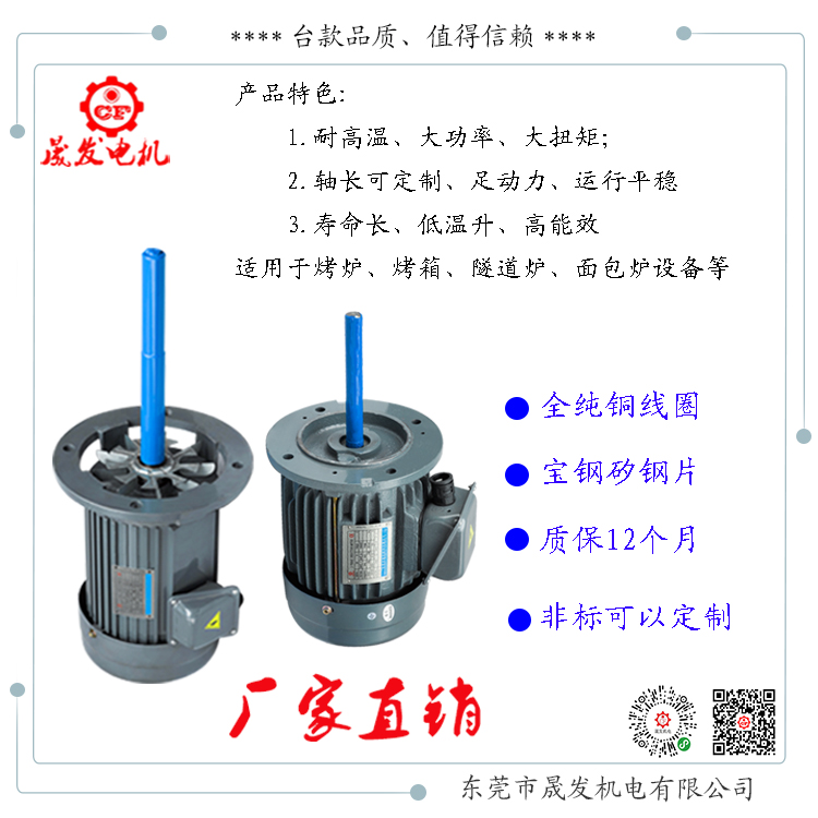 東莞市晟發(fā)機(jī)電有限公司座落于粵港澳大灣區(qū)、世界工廠之稱中國著名制造業(yè)名城-東莞虎門,是一家集研發(fā)、生產(chǎn)、銷售、服務(wù)于一體的專業(yè)電機(jī)研發(fā)生產(chǎn)廠家。至今已有10年生產(chǎn)經(jīng)營歷史,公司主要產(chǎn)品有:臺(tái)灣款電機(jī)、高速電機(jī)、工具磨床電機(jī)、自動(dòng)車床電機(jī)、銑扁機(jī)電機(jī)、編織機(jī)電機(jī)、齒輪減速電機(jī)、耐高溫長軸電機(jī)、剎車電機(jī)、調(diào)速電機(jī)、非標(biāo)定制電機(jī)等,電機(jī)種類齊全。產(chǎn)品行銷遍布全國,服務(wù)熱線:18002697398、13826940926。
