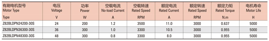 無刷直流技術(shù)參數(shù)表: