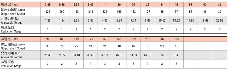 無刷直流行星減速電機(jī)參數(shù)表: