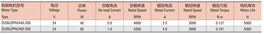 無刷直流技術(shù)參數(shù)表: