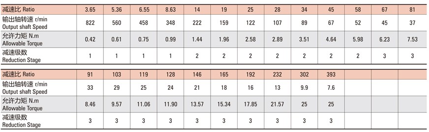 有刷直流行星減速電機參數(shù)表: