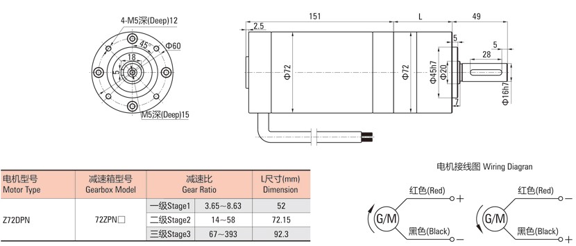 外徑72直流有刷行星減速電機(jī)外形圖: