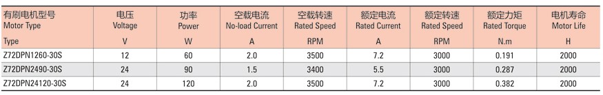 有刷直流技術(shù)參數(shù)表: