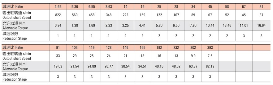 有刷直流行星減速電機(jī)參數(shù)表: