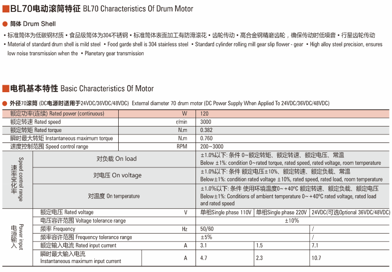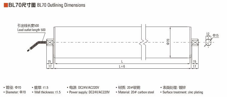 BL70無刷直流電動滾筒電機