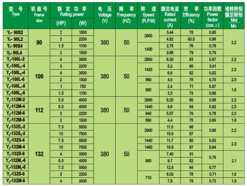 機(jī)座號(hào):90~132 功率1.5~10HP(1.1~7.5KW) 電壓:220/380V 頻率:50/60Hz