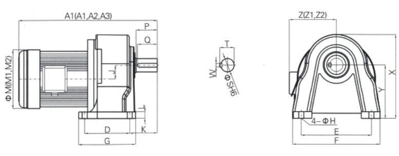 5.齒輪減速電機(jī)的安裝基礎(chǔ)應(yīng)為強(qiáng)度、剛度可靠、減振、抗扭的底座、臺(tái)架等到支撐結(jié)構(gòu)上,而且基礎(chǔ)必須干燥,且不得有油脂;