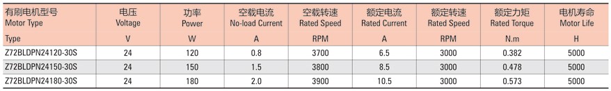 無(wú)刷直流行星減速電機(jī)參數(shù)表: