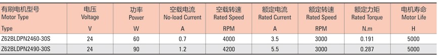 無刷直流行星減速電機(jī)參數(shù)表: